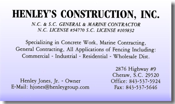 Marine Contractor. We currently have two divisions. Jones Fencing can service all of your residential, commercial, and industrial fencing requirements, while Henley's Construction can meet all of your commercial construction needs. We offer competitive rates and free estimates on any fencing, marine, or general building project.